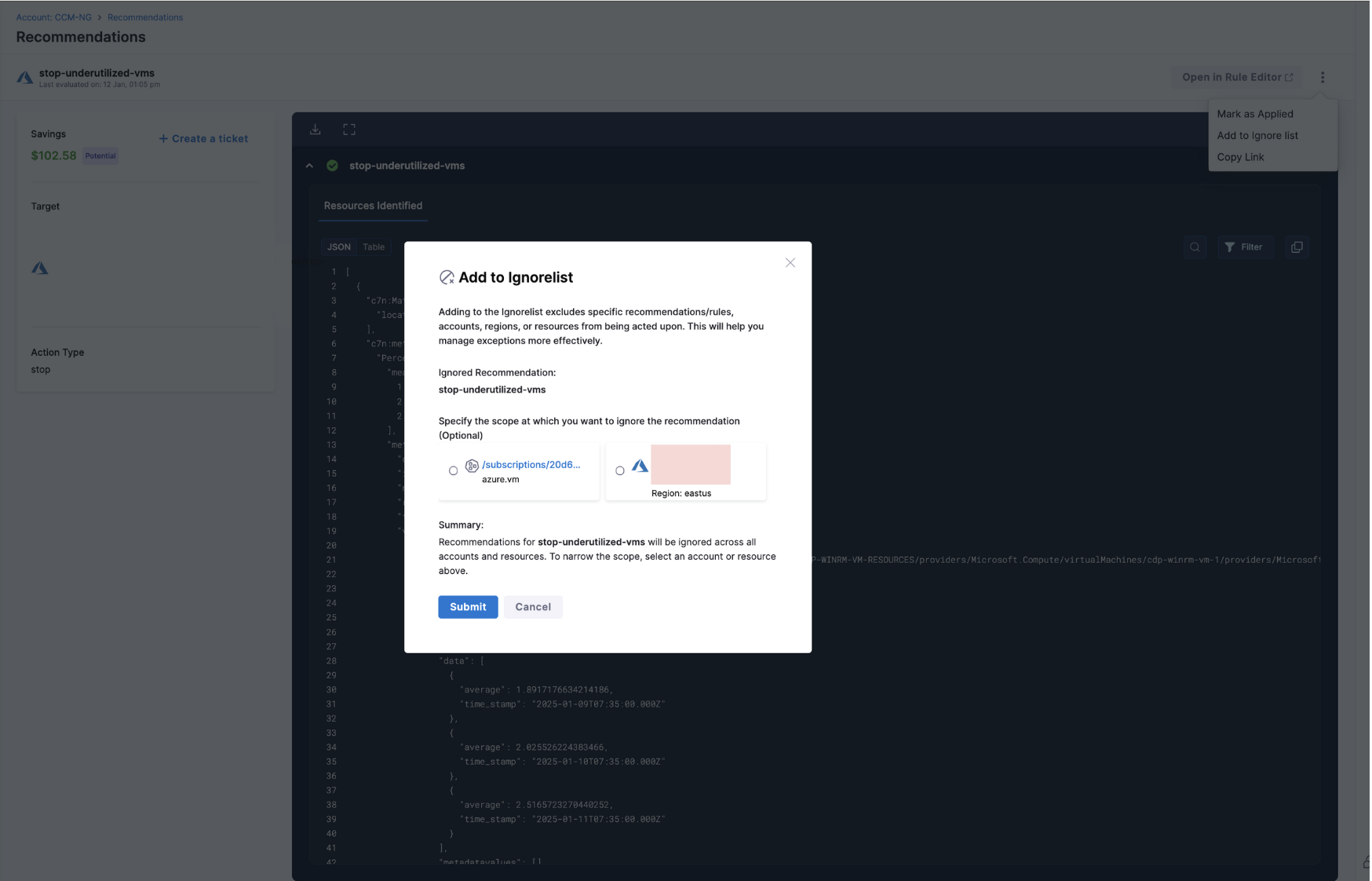 Owing to this, now, while adding a recommendation to Ignore List, users have the option to specify the scope at which the users want to ignore the recommendation. The scope can be either at: